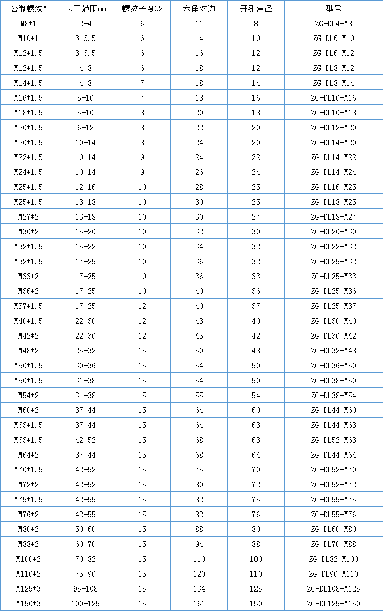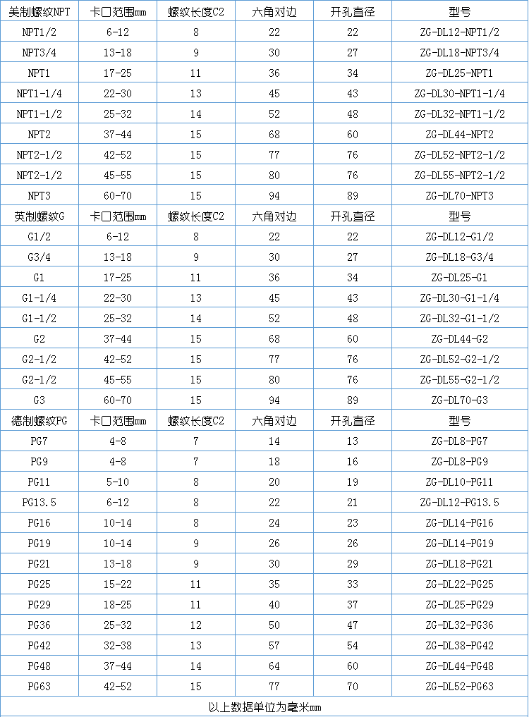 金属电缆接头-金属格兰头-电缆防水接头-电缆固定头材 料 :外部金属为黄铜镀镍 内部芯套为尼龙 PA66密封件:材料为丁腈橡胶 NBR防护等级:在规定的电缆外径内,并使用合适的O形密封圈,防护等级可以达到 IP68温度范围 静态:-40℃到 100℃,短时间可以达到 120℃动态:-20℃到 80℃